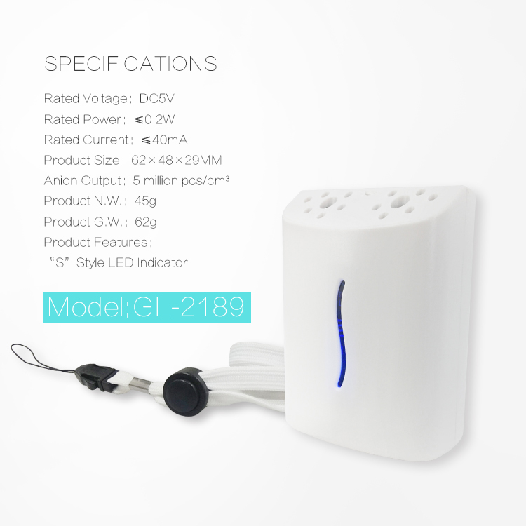 OEM/ODM Manufacturer Ozone Food Purifier - GL-2189 Necklace Mini Personal Air Purifier with LED Indicator – Guanglei Detail: