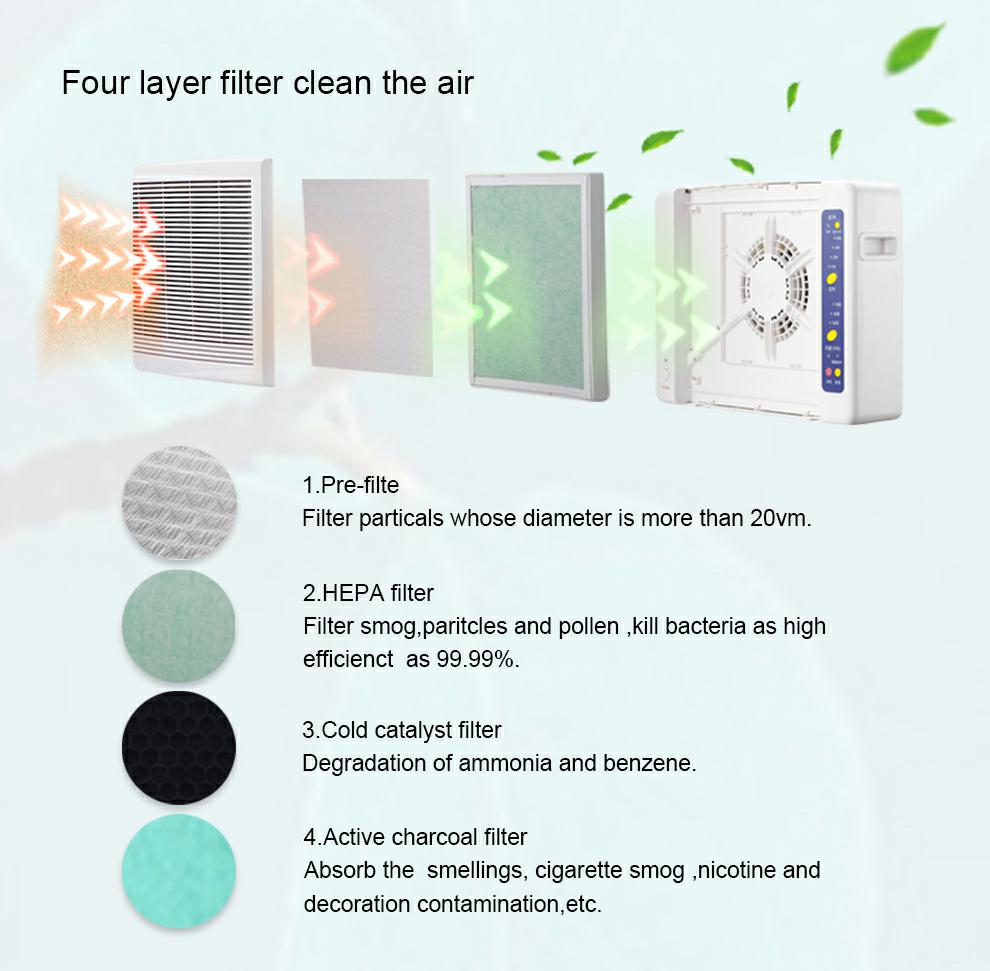 7. HEPA, Active Carbon, and Cold catalyst filter, high-efficient pollution remove.