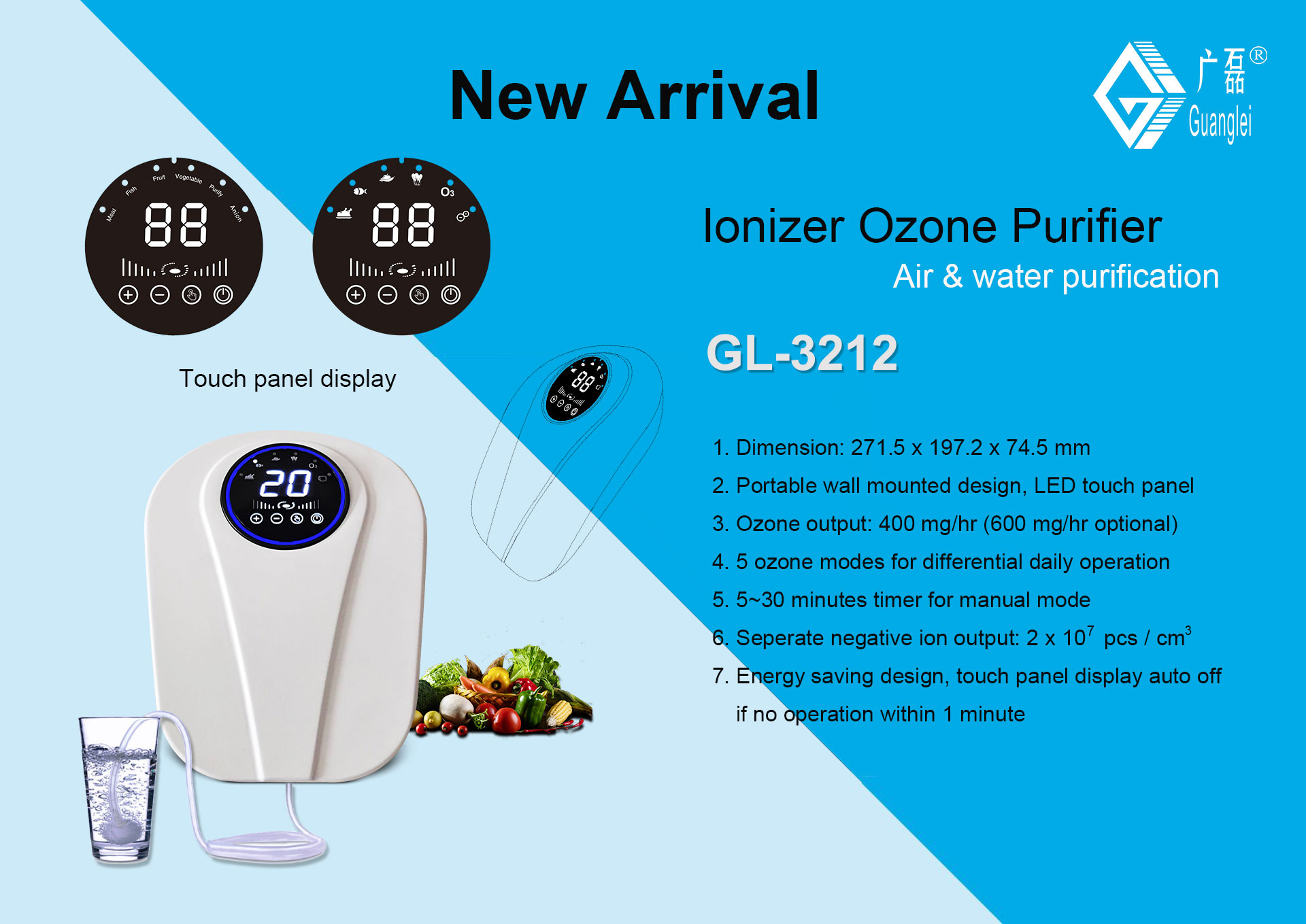Factory Tuya App Air Purifier - GL-3212 Ozone Anion Generator Water and Air Purifier Food Sterilizer – Guanglei Detail: