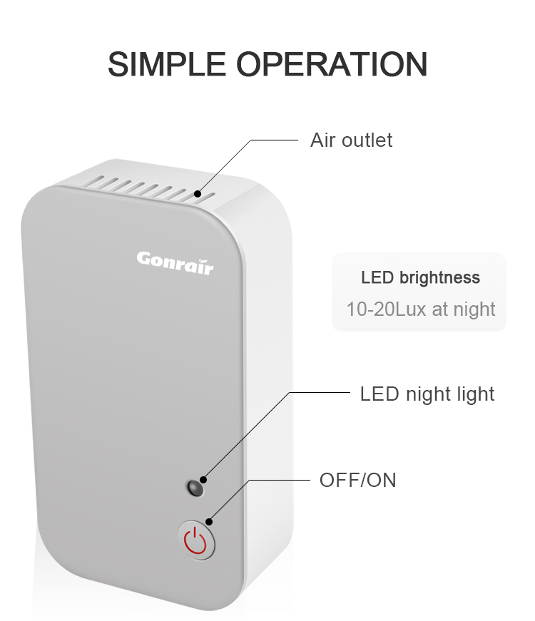 4) Ozone function:200mg/h output,inhibit the growth of mould, and effective decomposition of formaldehyde.