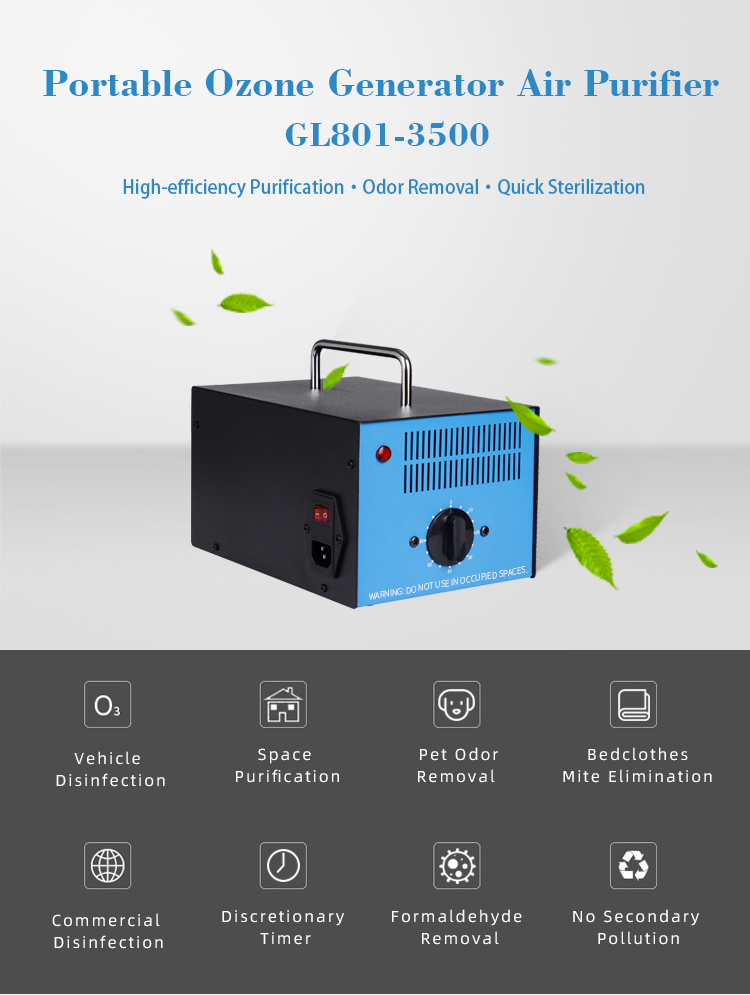 1.High concentration of ozone output, efficient odor and air pollution removing.