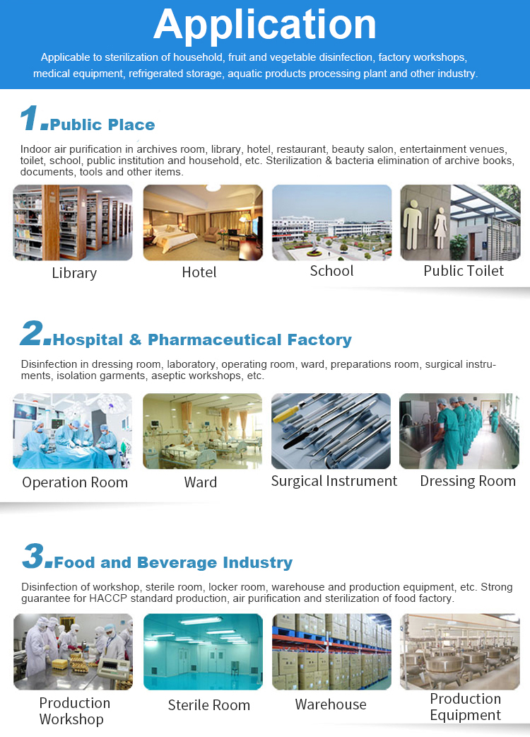 3.Diversified application: Home and Living Area/Offices and Stores/Cars and Boats/Smoking Areas/Kitchens and Restaurants/Industrial use/Public Area/Hospital/Food and Beverage Industry/Breeding and Planting Industry